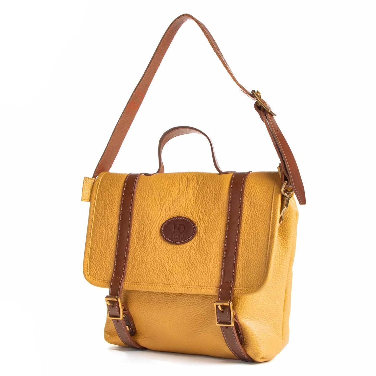 A luxury leather bag made with full grain, veg tanned luxury Italian leather illustrating the full natural characteristics of the cow hide used. The leather ages well boasting a characteristic patina over time.
